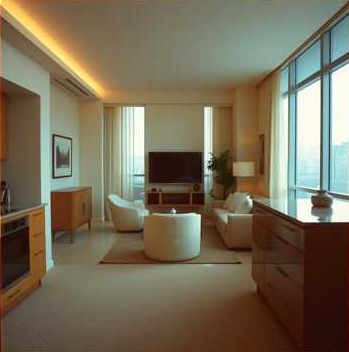 Wood floors in the living room, beige softness under feet
