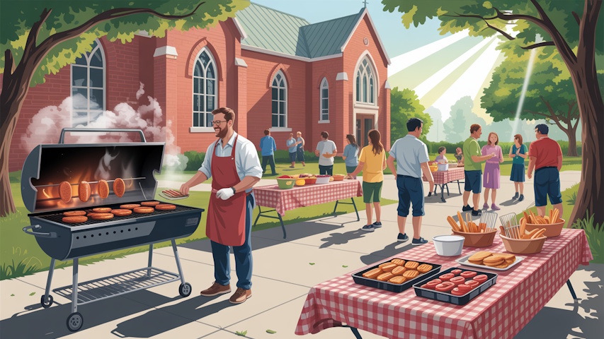 I had cookout at Boston UPC in Brighton, MA. Burger and hot dog, salads, corn, etc. People played outdoor games.