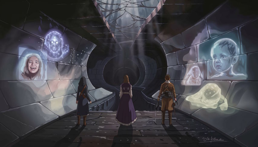 Following corridors that twist and loop, they reach the Chamber of Echoes. Walls reflect not sound, but memory. Elara hears laughter—her mother’s voice—then betrayal. Rheya relives her mentor’s death. Thorne sees the children he couldn’t save in war.