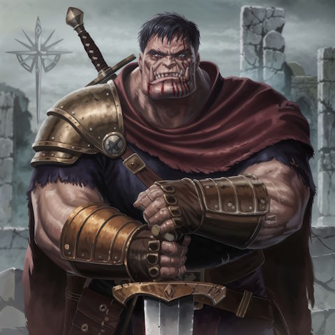 A hulking mercenary with weathered skin, scarred from past wars. In his youth, he swore to protect the weak. Now he wanders, haunted by memories. He seeks the Staff of Ash’Mara, said to purify even the darkest of souls, hoping to atone for sins too heavy to name.